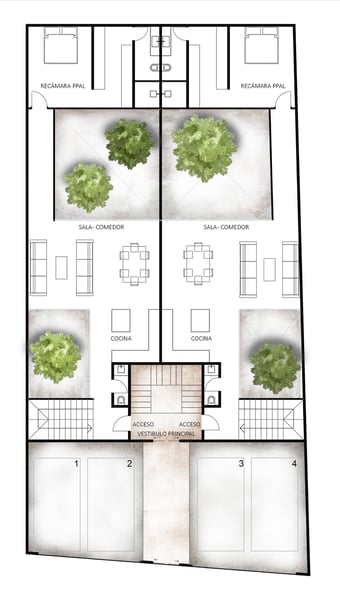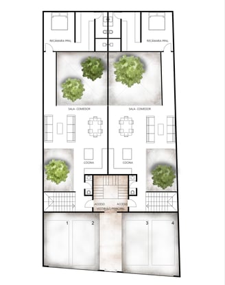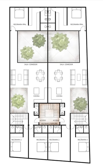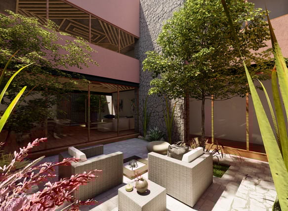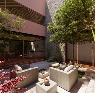 Cuatro Patios es un pequeño conjunto de 4 departamentos ubicado en San Miguel de Allende, todos los departamentos se abren a patios interiores que brindan luz natural y ventilación a todos los espacios, cuenta con un roof top de uso común y dos particulares ideales para disfrutar momentos en familia.